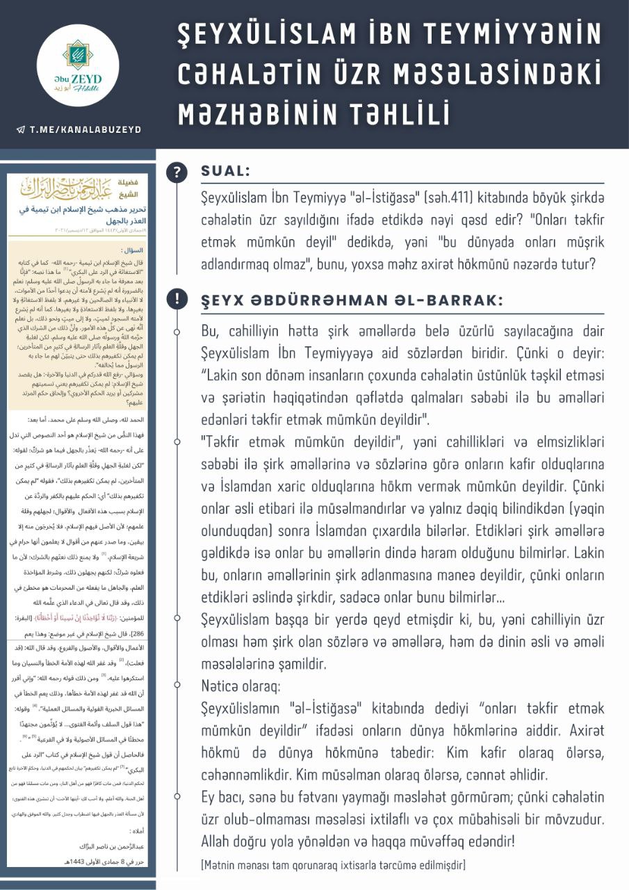 Şeyxulislam İbn Teymiyyənin cəhalətin üzr məsələsindəki məzhəbinin təhlili